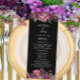 Elegant, romantic purple floral and greenery on black wedding reception menu. Contact me for assistance with your customization or to request additional matching or coordinating Zazzle products for your wedding or wedding events.