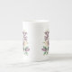 This lovely bone China mug is shown in white with a pretty purple floral watercolor print.