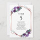 Plan your perfect and special wedding with precision, from save the date to day of the wedding events like reception and seating arrangements with these elegant purple floral rose gold geometric frame table number seating chart cards.