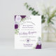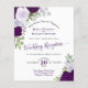 These beautiful wedding reception invitations are designed for guests who are invited to the reception only, and not the marriage ceremony. The elegant design features hand painted watercolor roses in shades of purple, lavender, and plum, with a bevy of garden leaves and greenery. The typography features fancy script calligraphy, and the back is a deep marbled plum purple or eggplant colour. Budget friendly and affordable, these invites are the perfect way to celebrate your wedding without spending a fortune on the invitations.