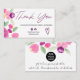 Elegant Modern minimalist business order thank you brush script font with a heart and pretty hand painted purple, pink and green floral watercolor. Add your social media. With an elegant signature script font, all the colors are editable , add your logo.