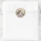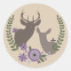 A sticker featuring an illustration of purple flowers and greenery surrounding the busts of a buck and doe. Look for matching wedding invitations and more at Jill's Paperie.
