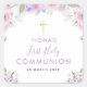 purple floral first holy communion square sticker