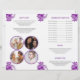 Elegant purple floral funeral program template with a serene design, perfect for memorial services, celebration of life events, and honouring loved ones. Fully customizable and print-ready.