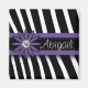 Purple flower with diamond graphic in the centre, black and purple nameplate area for you to personalize your name and black & white zebra print pattern background. A cute feminine girly gift for a girl or woman on here birthday or graduation.