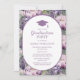 Purple floral and graduation cap graduation party invitation for the class of 2024 or any year. Text is customizable, so make it your own. Contact me for assistance with customization or to request matching products.
