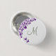 Purple Floral Olive Green Initial Script Monogram 1 Inch Round Button