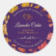 Make a lasting impression with these modern and professional product packaging labels! Featuring a chic double heart symbol, calligraphy lettering, and a stunning round gold frame with a vibrant orange gradient floral pattern on a rich purple background, these stickers add a touch of sophistication to any brand. Perfect for handmade products, small businesses, gift packaging, wedding favours, and more. Easily personalize these custom product sticker labels to match your brand’s identity.