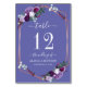Purple Floral Rose Gold Frame Wedding Table Number