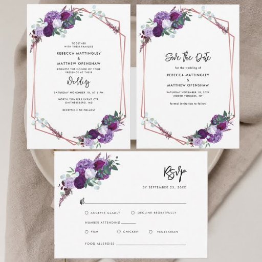 Purple Floral Rose Gold Geometric Wedding SuiteDesigned by S A Holmes