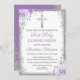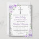 Purple Floral Silver Glitter First Holy Communion Invitation