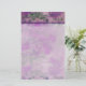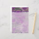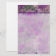 This Purple Floral Stationery features a digital art layered design with flowers and plants in green and purple.