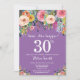 Purple Floral Surprise 30th Birthday Invitation for Women. Watercolor Floral Flower. Purple Lilac Lavender Violet Background. Pink, Yellow, Orange, Purple Flower. Adult Birthday. 13th 15th 16th 18th 20th 21st 30th 40th 50th 60th 70th 80th 90th 100th, Any Ages. For further customization, please click the "Customize it" button and use our design tool to modify this template.