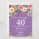 Purple Floral Surprise 40th Birthday Invitation for Women. Watercolor Floral Flower. Purple Lilac Lavender Violet Background. Pink, Yellow, Orange, Purple Flower. Adult Birthday. 13th 15th 16th 18th 20th 21st 30th 40th 50th 60th 70th 80th 90th 100th, Any Ages. For further customization, please click the "Customize it" button and use our design tool to modify this template.