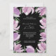 Invite guests to your wedding with an elegant watercolor border design featuring purple and white magnolia blossoms and leaves on a black background. This collection features a full invitation suite along with many other complementary products for your special day. MATCHING ITEMS in our collection.
