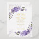 Beautiful wedding invitation with purple floral design and foil writing and dusting.