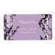 Elegant Wedding thank you labels in stylish modern purple, black and white with elegant floral pattern, the perfect addition to your wedding, available in matching cards, invitations, and envelopes. Perfect for wedding favours or wine bottles.