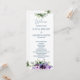 Purple and Green Floral Wedding Programme Card – a harmonious blend of nature-inspired beauty and elegant design. The enchanting purple and green floral pattern set against a pristine white background creates a visually captivating aesthetic, setting the perfect tone for your wedding celebration. The addition of navy blue text adds a touch of sophistication, ensuring clarity and style in presenting your ceremony details. This programme card serves not only as a guide to the events of your special day but also as a cherished keepsake for your guests. Elevate your wedding experience with this beautifully crafted card that captures the essence of romance and refinement.