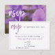 Purple Flower Floral Wedding Menu Choice rsvp card. Wedding rsvp card with a menu choice for a wedding. Floral purple spring or summer wedding menu choice card - features a photo of purple flowers and modern white script. This wedding response card asks your guests what meal they would like at your reception and the number of menus. You can change the details on the card to fit your need. Great for a rustic, floral and country wedding.