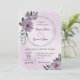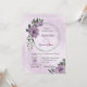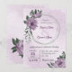 Unique wedding invitation featuring romantic dusty purple flowers and green leaves.