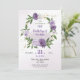 purple flowers & leaves wreath birthday invitation