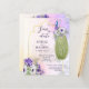 Purple flowers peacock budget save the date template, with QR RSVP at the back.