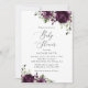 Invite friends and family in style and set the tone for your special day with this charming baby shower invitation. Design features plum purple watercolor flowers and greenery on white background.
