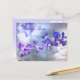 One branch of incredible luminous purple, lilac and magenta coloured sage blossoms set against a background that glows in pale blue, silver, pink and white. is the theme of this elegant floral save the date wedding postcard. More sage blossoms are on the back. All text can be customized for your special occasion.