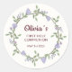 These elegant round stickers bring natural beauty to your Communion celebration. Adorned with soft purple florals in a crown arrangement, they’re perfect for labelling treats, bags, or thank you notes with style and grace.