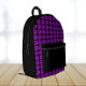 Travel with this stylish and trendy backpack that features the image of a purple Cranesbill Geranium flower on a black background and printed in a tiled pattern on front side only. A fun, floral design! Sides, back, and zippered pouch are black.