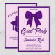 Purple Gingham Bow Graduation Party Invitation