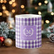 Custom Monogram Mug, Purple Gingham Pattern Design - 6 colours.