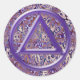 Purple Glass Damask Recovery Sobriety Sober Sticker - cool glass design on colourful damask-like background. The black Circle Triangles on a white background are so boring! The Circle and Triangle symbol is used in many Recovery and/or Sobriety Groups Narcotics Over-Eaters etc.). Why be Show it off! Be proud of it. These are great for yourself or as gifts for someone else in recovery to let them know you appreciate their sobriety. Items with the Circle and Triangle Recovery Sobriety symbol make especially meaningful gifts for celebrating lengths of time in recovery and for special anniversaries. The Circle and Triangle gives the user or wearer a constant reminder of how good it is to be free from addiction and other compulsions and, more importantly, how important it is to stay that way.