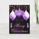 Purple glitter baubles christmas ornaments with dark purple wood and gold bokeh background