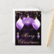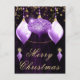 Purple glitter baubles christmas ornaments with dark purple wood and gold bokeh background