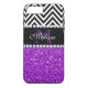 PURPLE GLITTER BLACK CHEVRON MONOGRAMMED Case-Mate iPhone CASE
