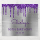 Purple Glitter Drip Silver 90th Birthday Party Sparkling Wine Label