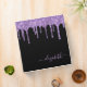 Personalized chic binder featuring sparkly purple faux glitter dripping down a black background. You can add your name in a trendy script with swashes and a title on the spine or leave blank.