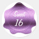 Chic graphics, of a faux purple glitter look faux wax seal envelope sticker. Text in white reads Sweet 16, and can be personalized to read what you want. Great as seals for your special occasion invitation envelopes.