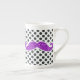PURPLE GLITTER MUSTACHE POLKA DOTS BONE CHINA MUG