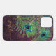 "Sparkling Peacock Feathers, Elegant Damask Pattern with Monogram, Teal Blue, Purple and Green Glitter iPhone 12 Case." Graphically designed by internationally licensed artist, Audrey Jeanne Roberts, copyright.