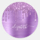 Personalized elegant and girly stickers with purple faux glitter dripping down a purple faux metallic background. Personalize with your name in a pretty white script with swashes.