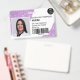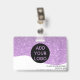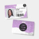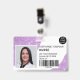 A modern, and professional purple glitter sparkles nurse photo id badge with logo and barcode horizontal layout.