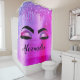 Purple Faux Foil Metallic Sparkle Glitter Brushed Metal Monogram Name and Initial Eyelashes (Lashes), Eyelash Extensions and Eyes Bathroom Shower Curtain. The design makes the perfect sweet 16 birthday, wedding, bridal shower, anniversary, baby shower or bachelorette party gift for someone looking for a trendy cool style.