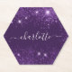 Purple glitter sparkles name script party paper coaster