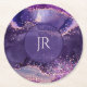 Purple glittery agate texture monogram round paper coaster