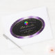 The design features a bright shimmering purple glitter frame with tiny glitzy stars on a plain black background.