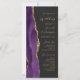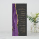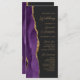 The left-hand edge of this elegant modern wedding program features a purple watercolor agate border trimmed with faux gold glitter. The customizable text combines gold-coloured calligraphy script and sans serif fonts on a dark background.