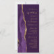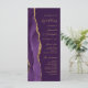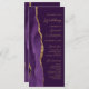 The left-hand edge of this elegant modern wedding program features a purple watercolor agate border trimmed with faux gold glitter. The customizable text combines gold-coloured calligraphy script and sans serif fonts on a plum background.