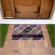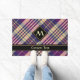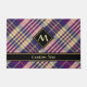 Purple, golden yellow and blue tartan design. Seamless pattern. Custom text and monogram.